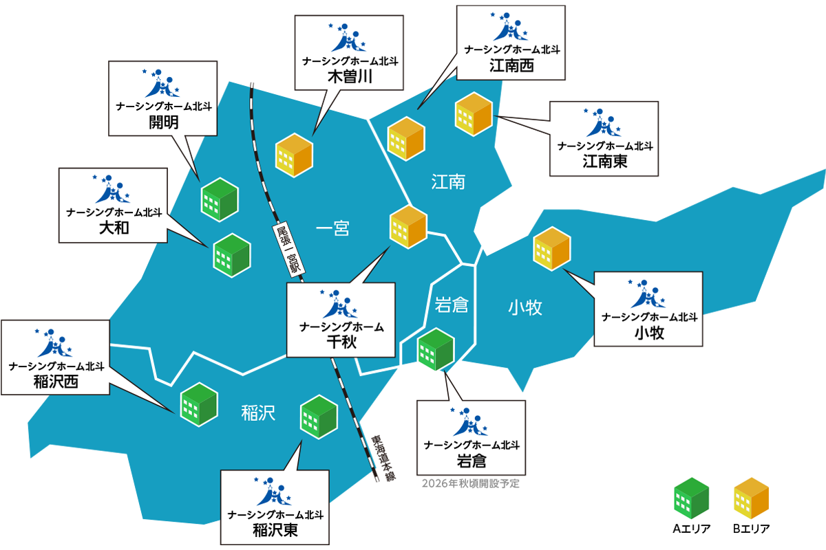 一宮市・稲沢市・江南市・小牧市にて、お住まいに近い施設をお選びいただけます。